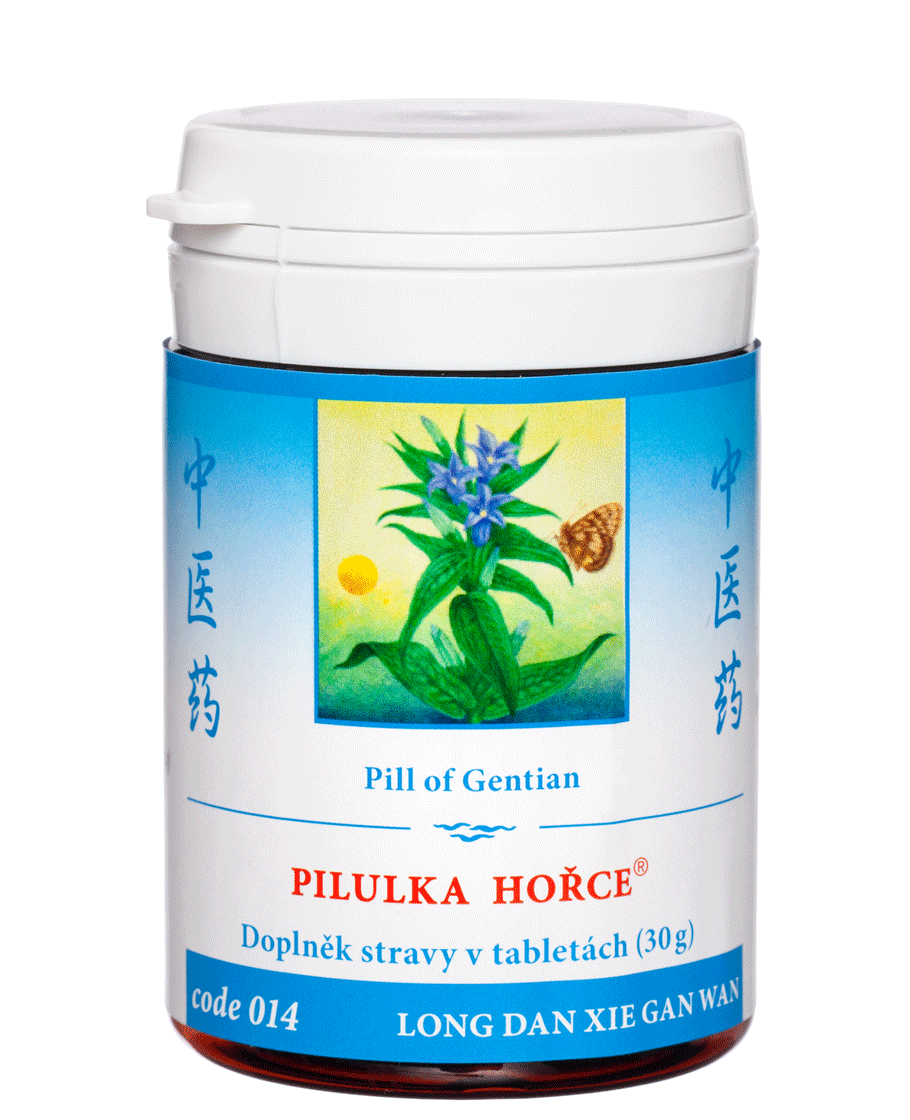 V případě, že horko stoupá do hlavy a zneklidňuje ducha, objevují se tyto příznaky: bolesti hlavy, lokalizované na jedné půlce hlavy nebo za očima nebo na vrcholku hlavy, migrény s nevolností až zvracením, motolice, pískání či hučení v uších, snížený sluch, zarudlé a pálivé oči, podrážděnost, vznětlivost, nespavost, bolesti v podžebří, zácpa se suchou tvrdou stolicí, zarudlý obličej a hořko v ústech. Často se užívá v tomto případě s bylinnou směsí Uvolnění napjaté tětivy (kód 112), jež stahuje stoupající YANG z horního ohniště a navíc i vyživuje YIN jater a ledvin, což z této kombinace činí vpravdě excelentní dvojici v léčbě migrén, hypertenze, tinitu, nespavosti atd., ale to vše musí býti podmíněno výše uvedenými příčinami! Rovněž na odblokování stagnující čchi v játrech, jež se pak mění na horko, se Pilulka hořce často používá i s další famózní bylinnou směsí Zklidnění zčeřené hladiny (kód 062), která nejen že rozprouďuje stagnaci QI ZHI, ale i vyživuje krev jater, čímž zklidňuje ducha a tím i tlumí podrážděnost a vznětlivost.